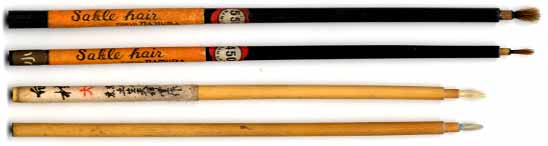 80年代あたりまでは、この筆と、溝引き定規+ガラス棒でB4ケント紙に平行ケイを100本引くという課題を出していたデザイン専門学校がありました。参考までに。