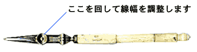 ロットリングのように書きたい線によって持ち直す必要がありません。線の太さの調整は先端のねじで行ないます。