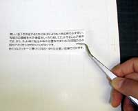 ピンセットでつまんで貼込みアタリや印画紙のカット面が平行になるように台紙の方眼や台紙に入れたアタリ線を基準に貼っていきます。