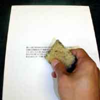 カットした印画紙にぺーパーセメントを薄くムラなく付けます。
