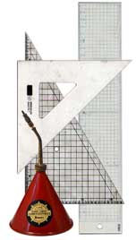 さて三角定規に、インクやペーパーセメントが付着すると、滑りが悪くなったり思わぬ失敗の原因になります。使用後はソルベックスを浸したティッシュ等で拭くなどして常に清潔を心がけましょう。