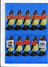 12.10(火)●帰国日● ハワイ旅行の帰国日の朝は早いんです。11時30分の飛行機でも朝4時30分に起こされます。5時30分に近所のスタバが開店するはずなので行ってみると「店長が寝坊してて店あきません」とのことで隣のマクドナルドの薄いコーヒーで我慢。日本では定時に開かない店など考えられませんが、ハワイでは普通なんでしょうかね。ABC は6時30分にちゃんと開店したので飛行機の中で飲む水とガムを買って帰路へ。帰りもビジネスクラス、しかもリゾッチャ。ナイキジャパンさんには本当に感謝いたします。来年もまた招待してくださいね(無理だよ)。 日付変更線を越えて快適な8時間のフライト後無事成田に到着。12月11日の午後2時45分にサンエイパーキングの営業部長(駐車場社長の奥様か、ってしつこいよ)が車を持ってきてくれて高速にのって帰る。 以上ナイキさんの御招待による、2002年ホノルルマラソン初参加レポートでした。 |