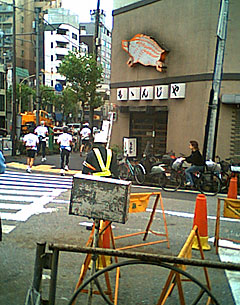 ついに四谷駅前到着。ここで最後の赤信号に阻まれる。なんだよう、もうすぐなのに、渡らせてくれよう。だめです。ルールですから。信号が変わるのを待ちましょう。 |