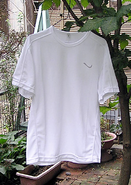 昨年(2002年)もデュポンのクールマックスを使用したスポーツラインの速乾性Tシャツは出ていて、試しに1枚購入したんですが、糸目が細かくて30分も走ると結構乳首にきました。その点今年のやつは生地が結構立体感のあるメッシュ状になっていてなかなか良いです。
