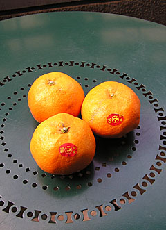 さて、みかんの効用ですが、あたりまえのこととしてビタミンCが豊富で活性酸素退治になる等ありますが、2003年の新発見で、じょうのう膜と呼ばれるみかんの薄皮に脂肪を分解したり、体内への吸収を抑える効果があることがポンジュースの「えひめ飲料」と愛媛大との共同研究で分かったそうです。私は昔から、ただ面倒くさがりなため、みかんは薄皮ごと食べていましたが、そういう食べ方をする根拠として今後はうんちくおやじになって理論武装しちゃうわけです。