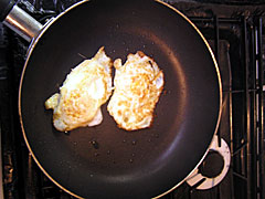 ちなみに目玉焼きだと、私の場合は、フッ素加工の良く熱したフライパンにオリーブオイル少々で卵2個、水は使わず両面焼きで白身カリカリですが黄身は半熟でって感じが好みです。うちの奥さんはそういう細かい注文には一切応じてくれませんので、休日の朝、走ってきてから自分で焼いて食べるのが楽しみであります。