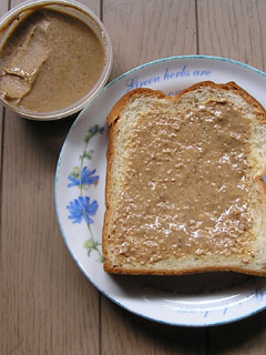 毎日1時間もジョギングしたり、フッキンにいそしむ健康おたくの皆様なら、落花生が高たんぱく食品で、ちょっと多めの脂肪分も不飽和脂肪酸という体に良いタイプの脂質であることは御存知でしょう。でもピーナツバターってBMI30以上の皆様(簡単に言うとデブ)が多いアメリカ人がとっても好きそうな食べ物で、いかにも太りそうと、私は今まで敬遠しておりました。鼻血とか出そうだしね。でもそれが無糖だったらいかがなんでしょうと思い試してみました。