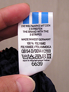 1989年11月ベルリンの壁が崩壊し、1990年10月3日東西ドイツ統一。そして2004年、中田商店でメイドインウエストジャーマニーって書いてあるランパン発見。え、西ドイツ?本当かなあ。去年たしか東ドイツ軍のジャージ上下を売っていたのは見ていたんで、いろいろ変わったもんがあるなあと思ってはいましたが、アディダスのランパンが300円とあらば買うしかないでしょう。