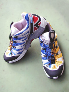 アテネオリンピックも終わったのですが、上野アメ横のロンドンスポーツでは五輪便乗商法なのか、決算ってことで全品半額セールが開催されていました。この半額って定価の半額ではなく、ただでさえ安いロンドン価格のさらに半額ってことです。で、サロモンのアドベンチャーレース用シューズが1490円。ちなみにサロモンのサイトで調べてみると、すでに新モデルXA Pro2が発売されていて13440円とのこと。ま、旧モデルで普通半額のところがロンドンなんで7割引位の値段で出てて、五輪記念セールでそれがさらに半額になったってことですね。