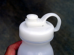 名前からして究極の運動時ボトルって感じですが、ノズル部分を引っ張れば飲めて押せば閉じるタイプの飲み口が付いたボトルであります。中が洗いやすいよう広めのキャップ、指をかけられる把手付き。持ったときに手になじむように指のカタチに合わせてへこみを付ける等の工夫がなされています。