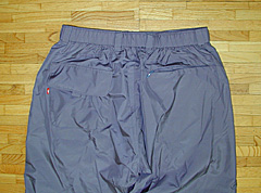 通常のパンツ同様のデザインで、前左右にポケットと後ろ右にファスナー付きポケットと左にマジックテープ止めのポケットが付いていて普段履きでも充分使えそうな感じであります。ウエストはゴム入りですが、どうしてもベルト(バンド?)がしたい人用にベルト通しも付いています。いたれいつくせりですなあ。