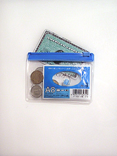 で、財布代わりに何が良いかということで、このようなケースはいかがでしょうかというわけです。走ると汗をかくので普通の財布や、またはお札のままウエストバックに入れたりすると、お札が汗でびっしょりになります。汚いですね〜。でも本当です。なんでこんなビニール製で水を通さないモノがグッドです。カードもないと走ってる最中に急に高価なものが買いたくなったり、タクシーに乗らなければならない事態になったとき不安だという方は、そうですね、クレジットカードでも1枚入れておくと安心です。出かけるときは忘れずにってことで。