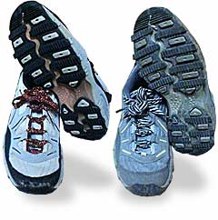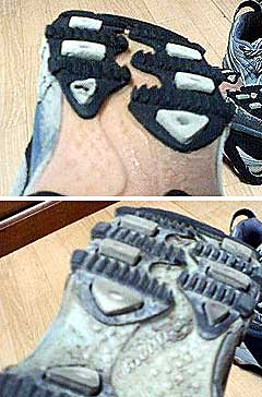 ・そのかっこいいソールの四角いゴムの穴に小石がはまる。そして裂ける。