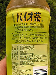 ランニング関連で色々調べものをしてて、この「バイオ茶」なる飲み物、何かで読んだ記憶があったんですよね。で、先日たまたま新宿みやざき館KONNEでお昼を食べた時に「あっ、バイオ茶のペットボトル発見!」なんて思って買って飲んでみたわけです。 |